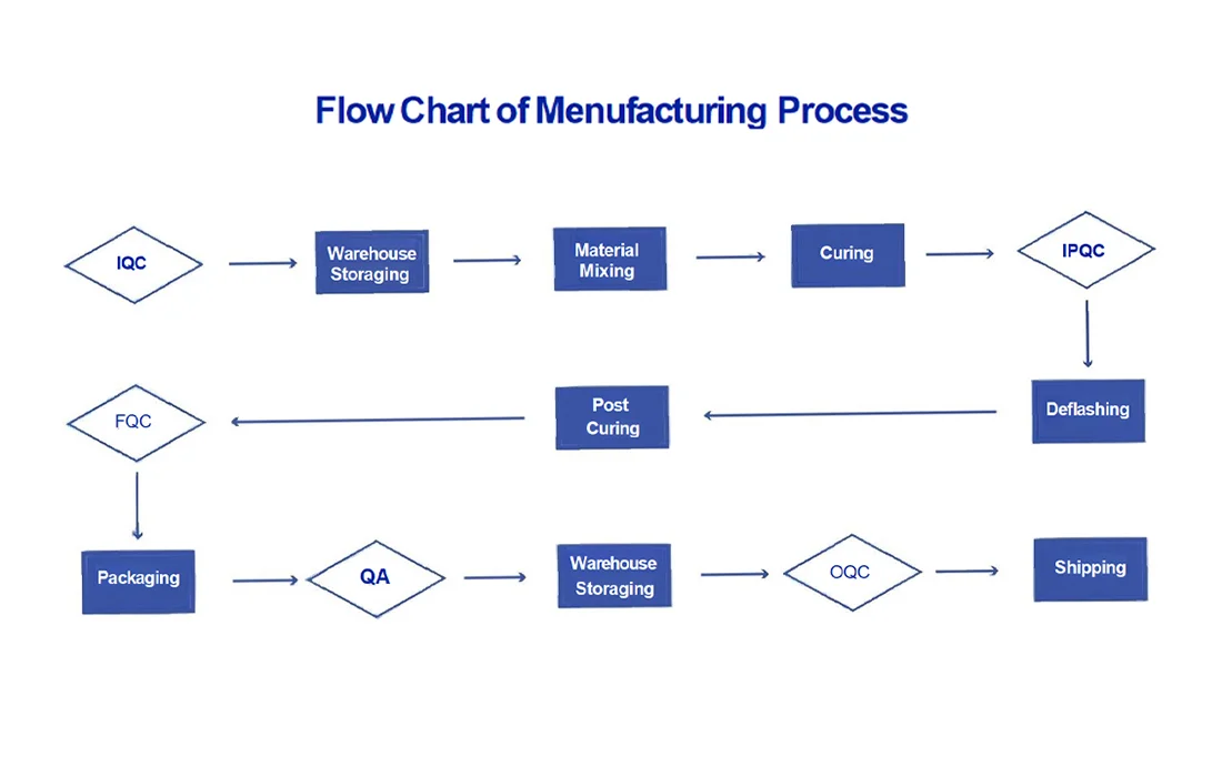 The company has a raw material warehouse, a cold storage facility (specifically for storing platinum vulcanizing agents), a mold room workshop, a compression molding workshop, an injection molding workshop, a stamping workshop, a spraying workshop, a silk-screening workshop, an adhesive workshop, a trimming workshop, an assembly workshop (including watch bands and printer shafts), as well as a UV workshop and laboratory to ensure comprehensive production capabilities.