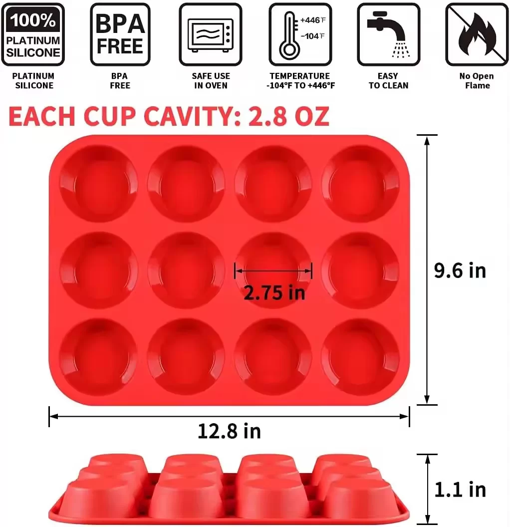Silicone Cupcake Pan Nonstick Silicone Molds Great for Making Muffin Cakes Bread Tart – BPA Free Baking Accessory